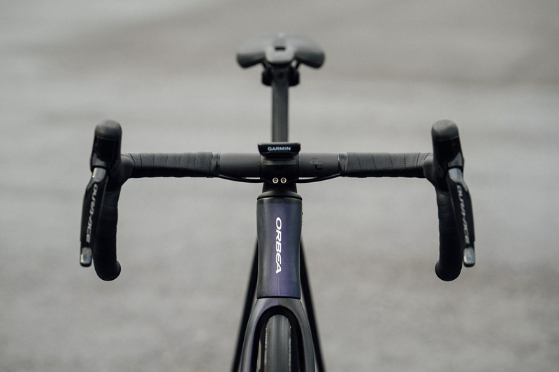 L'Orca, bien que axé sur la légèreté, présente encore quelques améliorations aérodynamiques sans compromettre le poids du cadre. L'utilisation du système d'acheminement interne complet des câbles ICR masque les câbles tout en conservant la possibilité de réglage des barres traditionnelles. L'Orca est équipé de barres légères de la sous-marque Oquo d'Orbea.