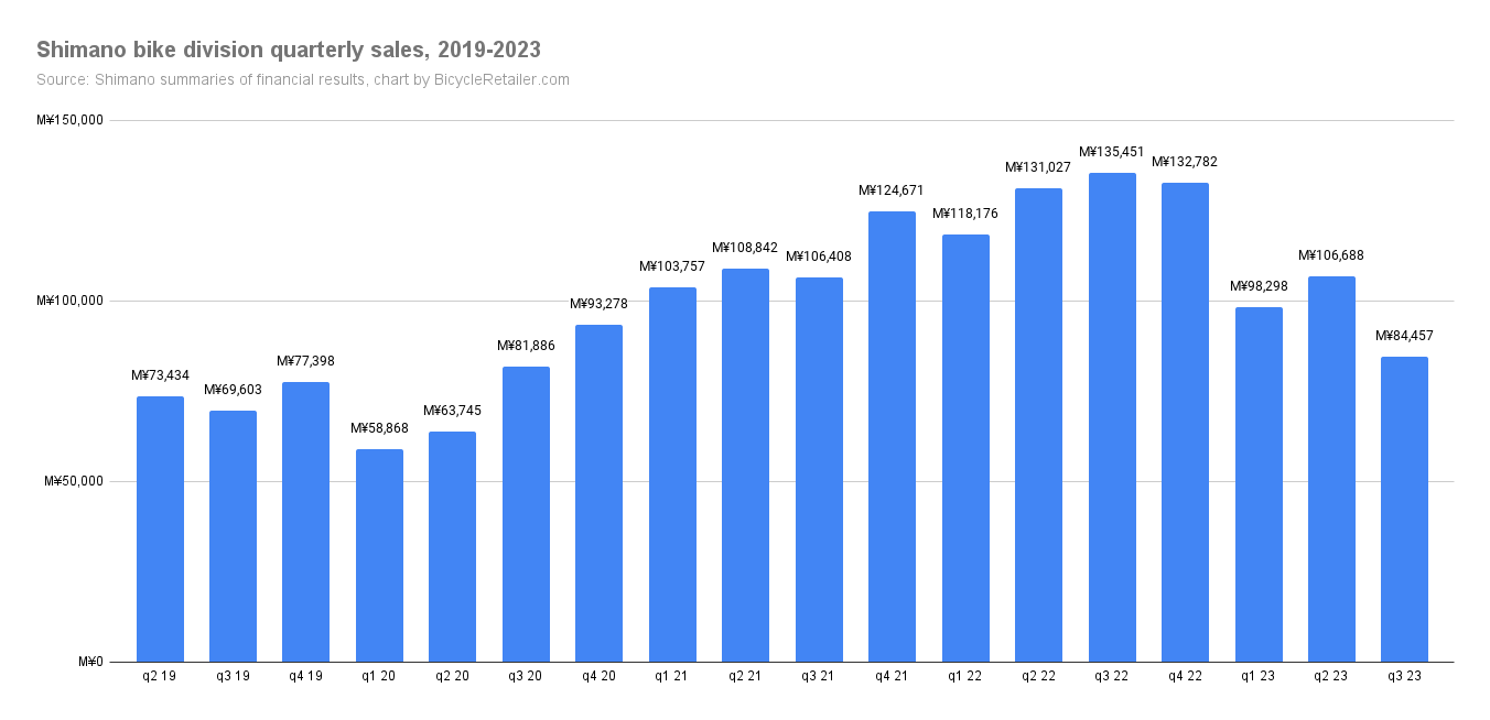 Selon les rapports, Shimano a indiqué que les ventes de produits liés au vélo ont chuté de 24,8 % au cours des trois premiers trimestres de cet exercice par rapport à la même période de l'année dernière, et que le bénéfice d'exploitation de l'activité vélo a chuté de 48,8 % au cours de la même période.