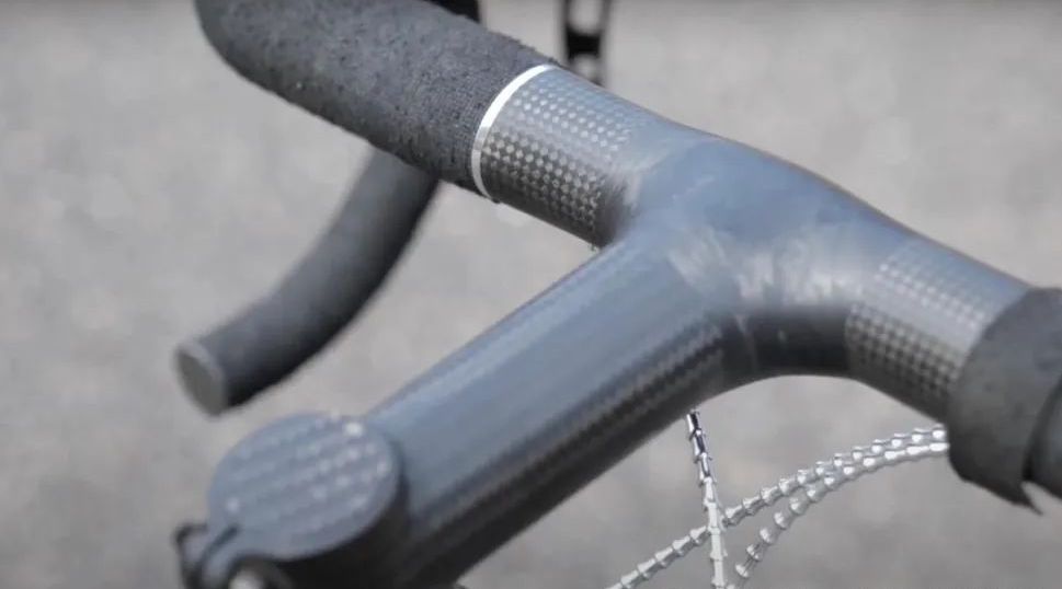 Le guidon d'origine en fibre de carbone a été remplacé par une version plus légère, qui a ensuite été allégée en utilisant une fraise pour éliminer tout matériau inutile.