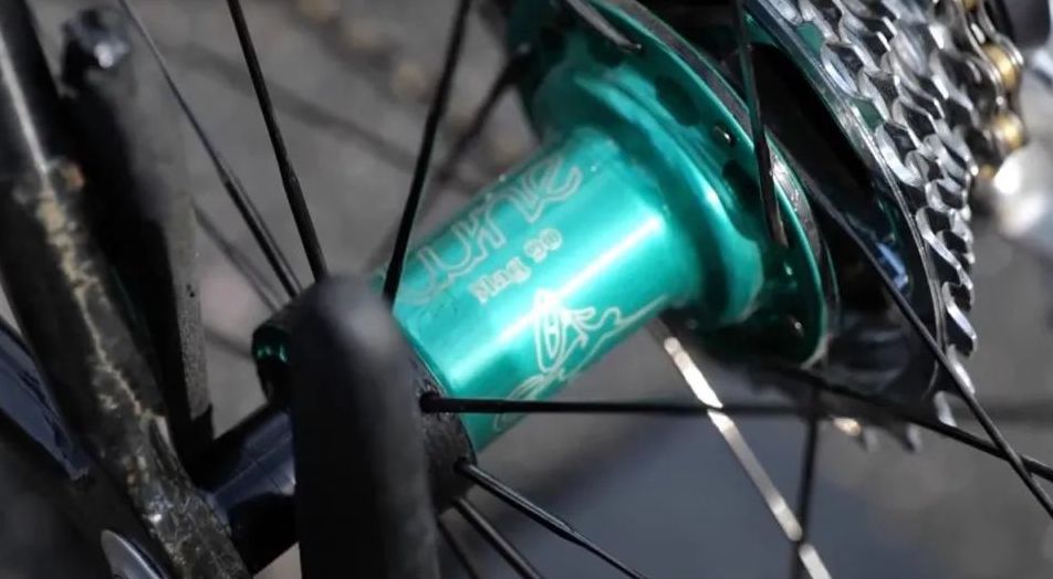 Les roues sont des moyeux de Tune, dont un prototype de moyeu arrière Mag 90.